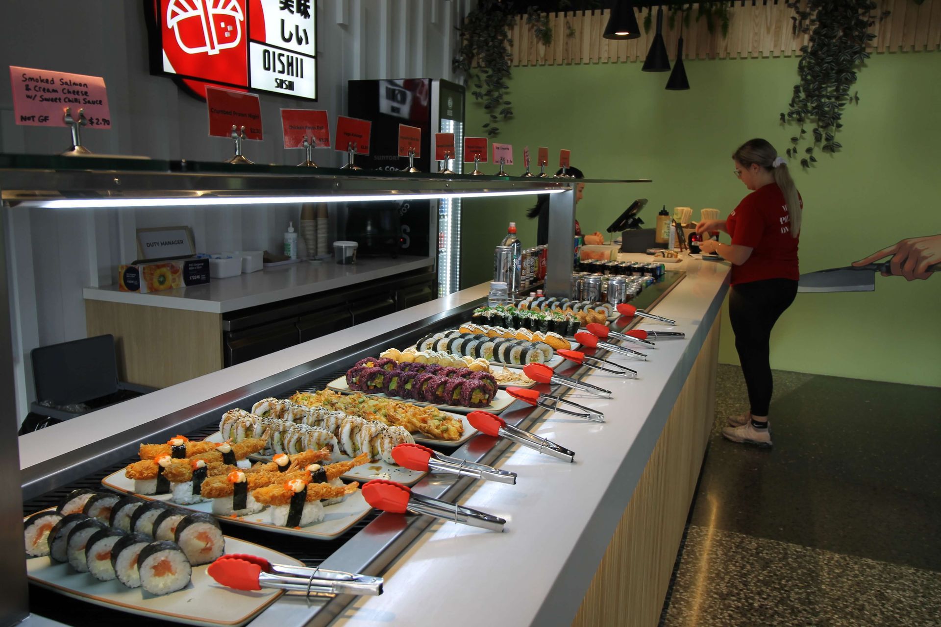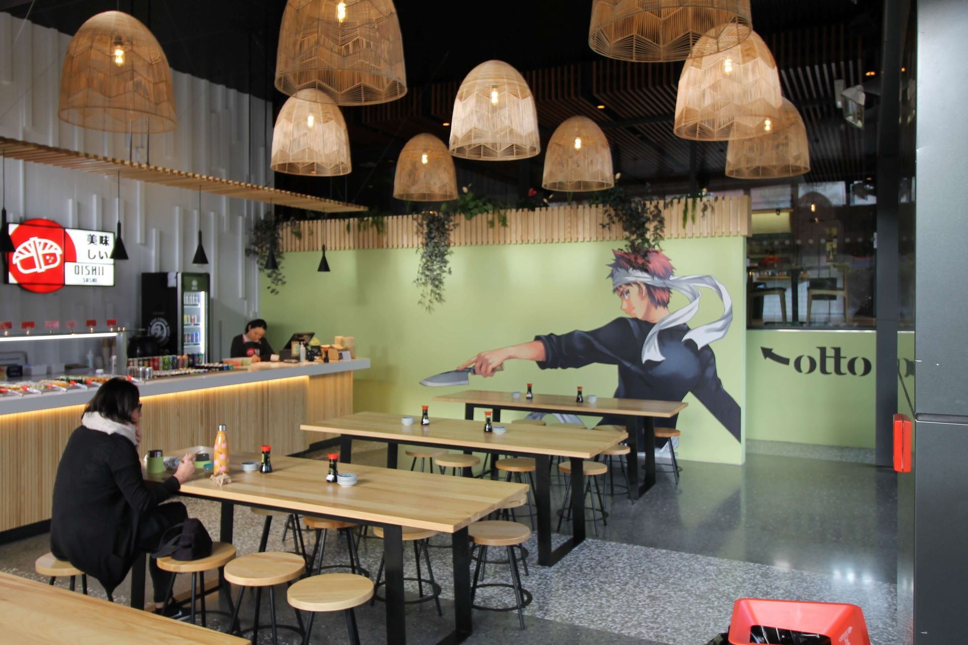 The two eateries had very different design needs—one focused on a sushi concept, and the other created a bar-like atmosphere—requiring varied materials and finishes to bring each vision to life.
